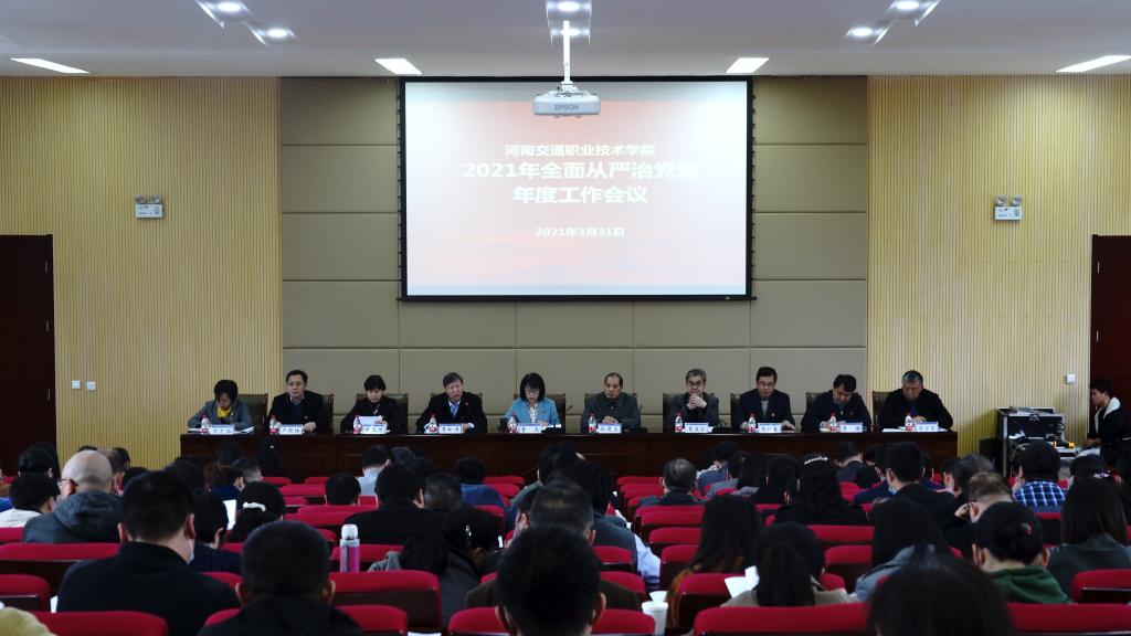 3月31日下午3点,学校2021年全面从严治党暨年度工作会议在郑东校区行政楼南侧报告厅召开。会议深入贯彻十九届中央纪委五次全会和十届省纪委六次全会精神,全面落实省交通运输厅和省教育厅2021年全面从严治党会议精神,安排部署学校2021年全面从严治党暨年度工作。全体在郑校领导出席会议,会议由副校长李松涛主持。