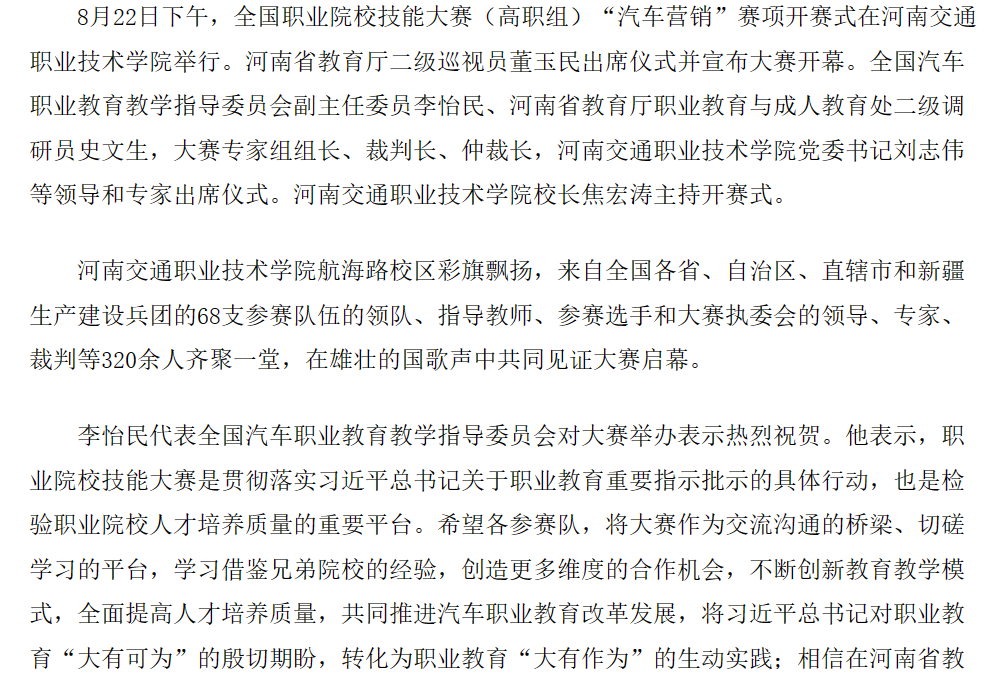 2023年全国职业院校技能大赛(高职组)“汽车营销”赛项开赛式在我校举行