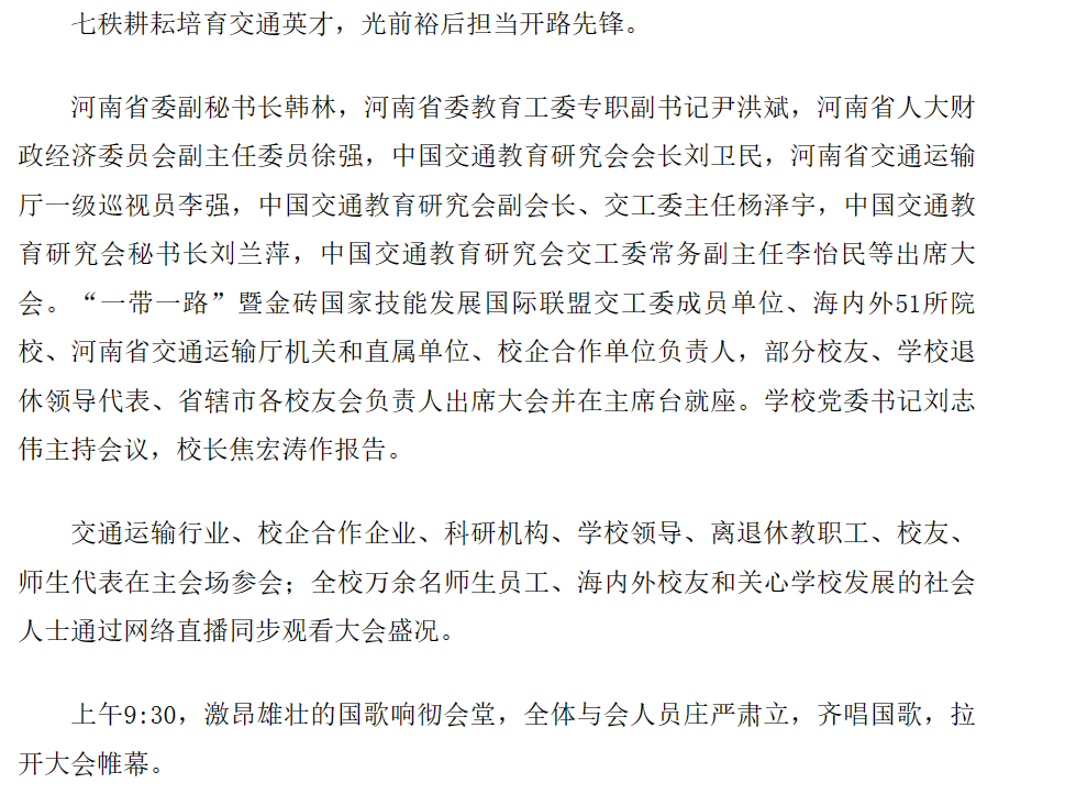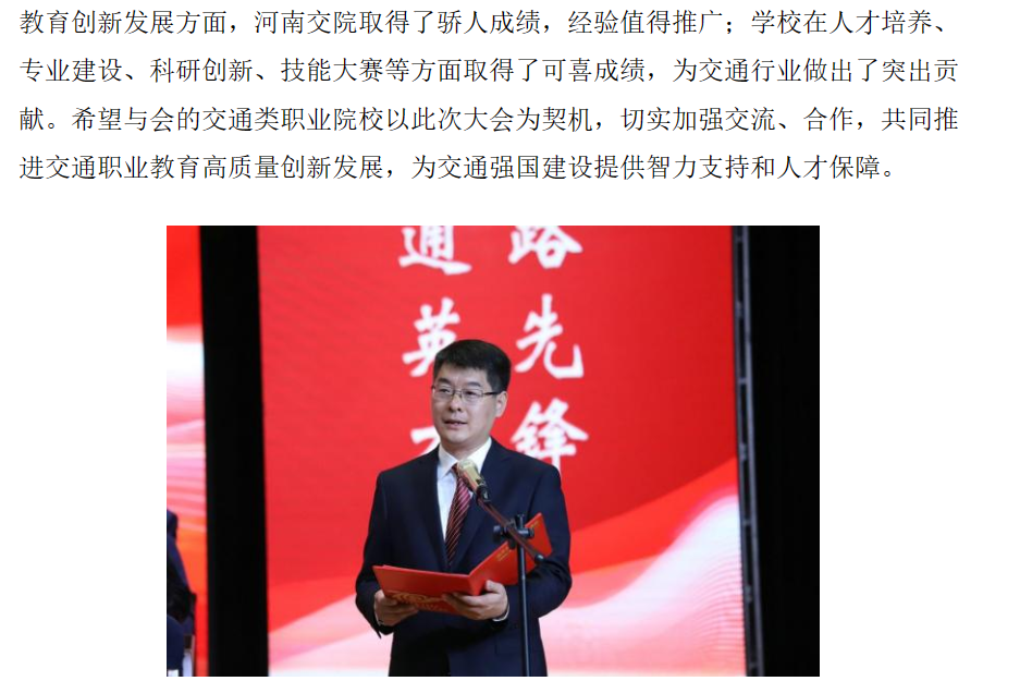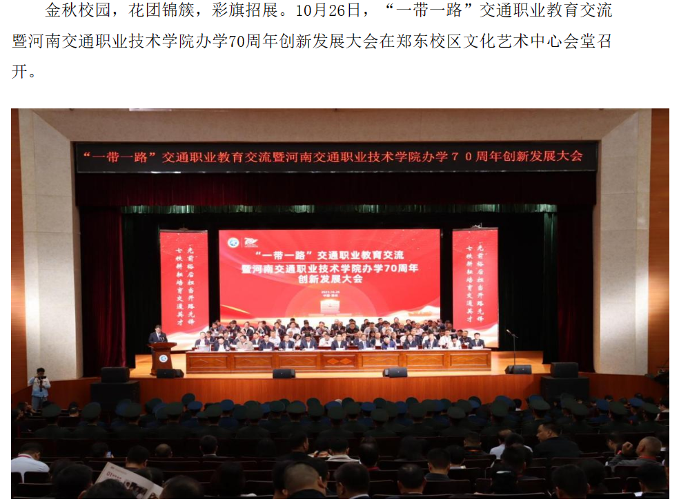 河南交通职业技术学院举行“一带一路”交通职业教育交流暨办学70周年创新发展大会
