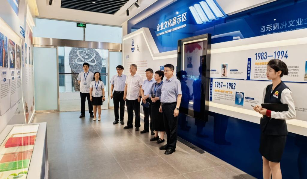 会前,焦宏涛一行参观了企业文化展示区,详细了解中核二三公司发展历程、关键技术、员工招募与培训等情况。