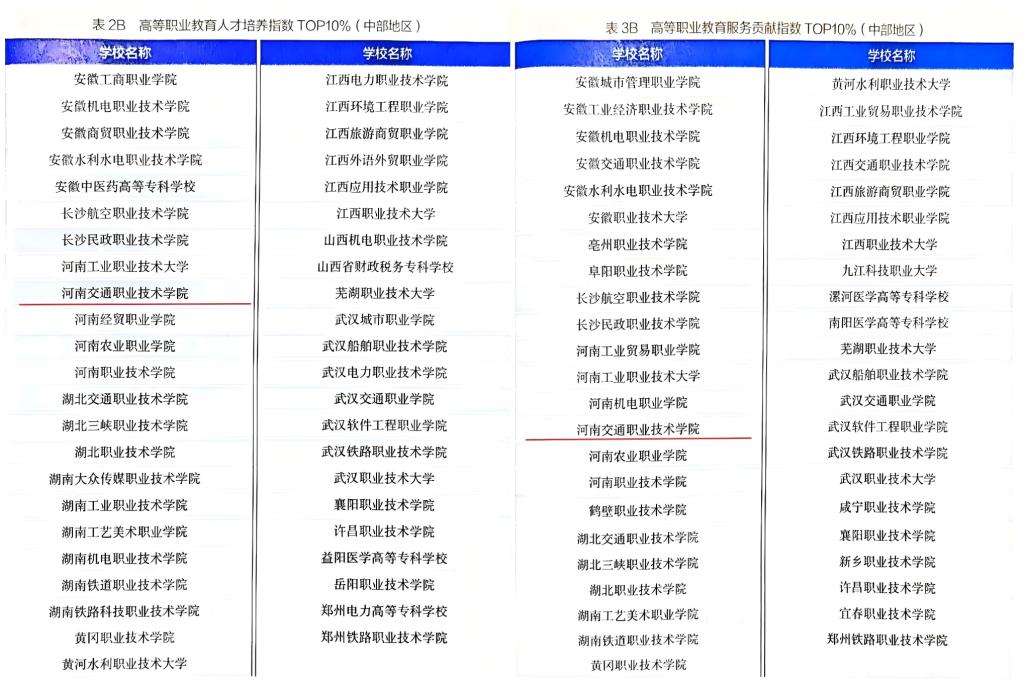 近日,中国教育科学研究院编制出版的《中国职业教育质量报告(2024年度)》(简称《报告》)正式发布,学校成功入选中部地区“高等职业教育人才培养、服务贡献TOP10%”两项榜单。