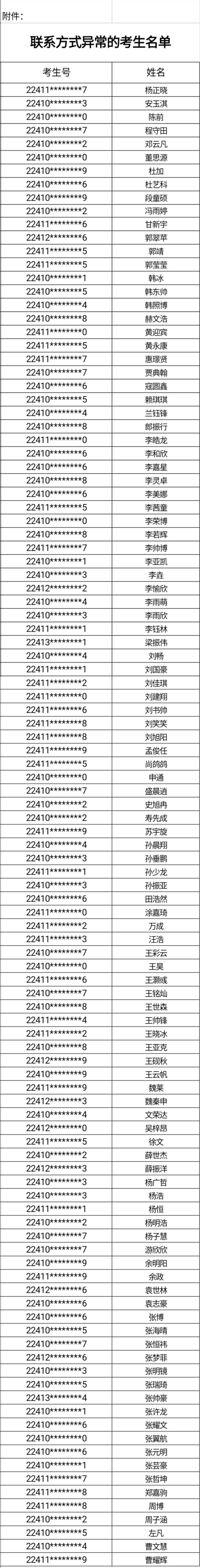 附件:联系方式异常考生名单