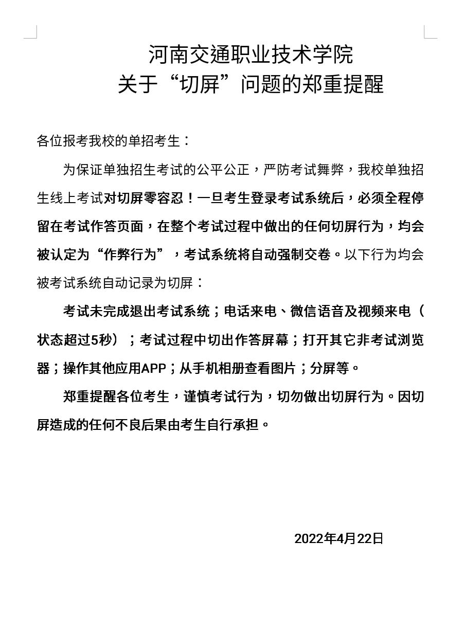 关于“切屏”问题的郑重提醒