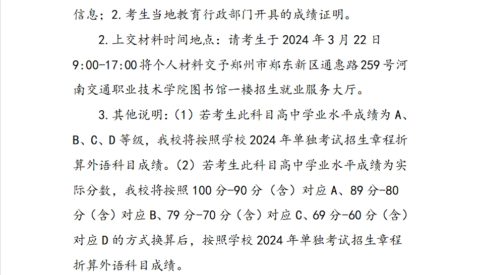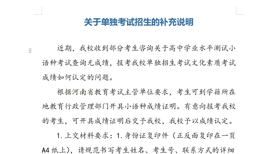 关于单独考试招生的补充说明