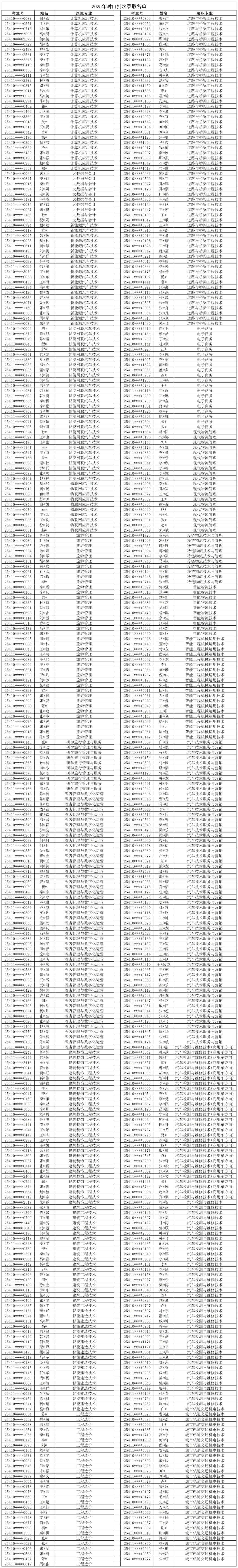 2025年对口批次录取名单