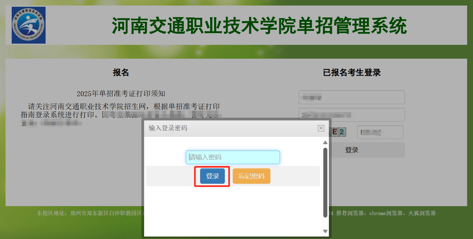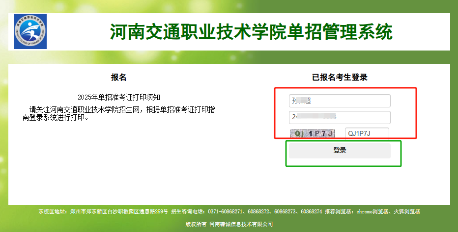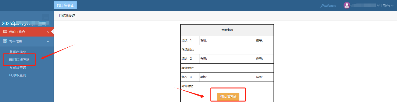 1、登录考生后台界面(打印准考证、查询成绩、查询录取结果)