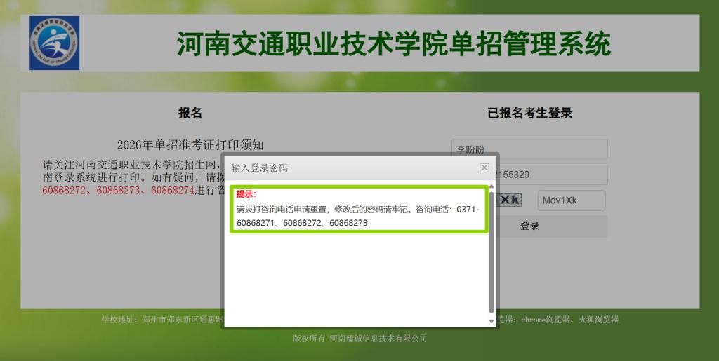 3)如忘记密码,请拨打0371-60868271、60868282、60868273重置密码。如图4所示。