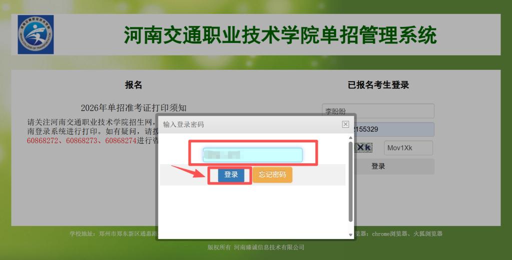 1、登录考生后台界面(打印准考证、查询成绩、查询录取结果)